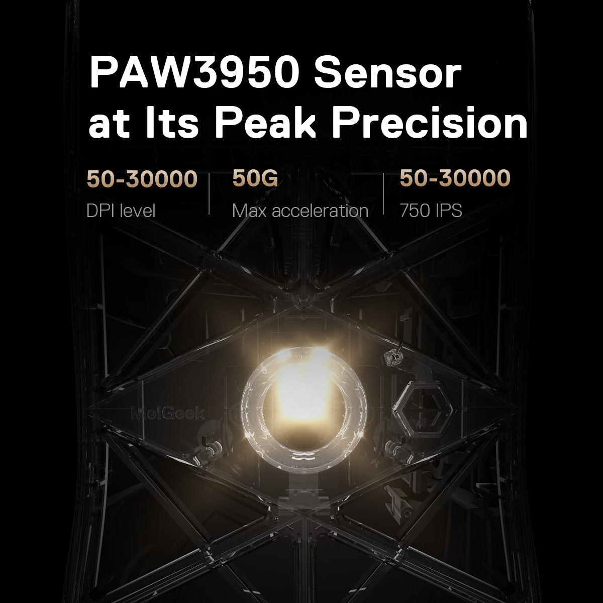 As the market's latest flagship chip, the PAW3950 offers 30,000 DPI for pixel-perfect tracking with zero lag. It features superior surface compatibility (works flawlessly even on glass) and is significantly more power-efficient at high polling rates, ensuring smoother performance and longer battery life for competitive play.