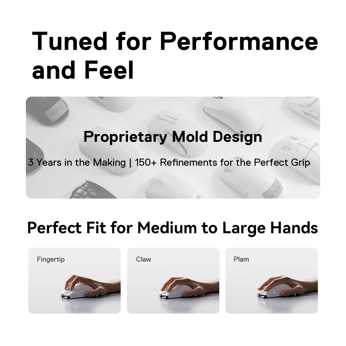 Custom‑built from MelGeek’s exclusive mold, the Horus Gaming Mouse is the result of over three years of refinement and 150+ ergonomic tests, crafted to match every nuance of a gamer’s grip.
