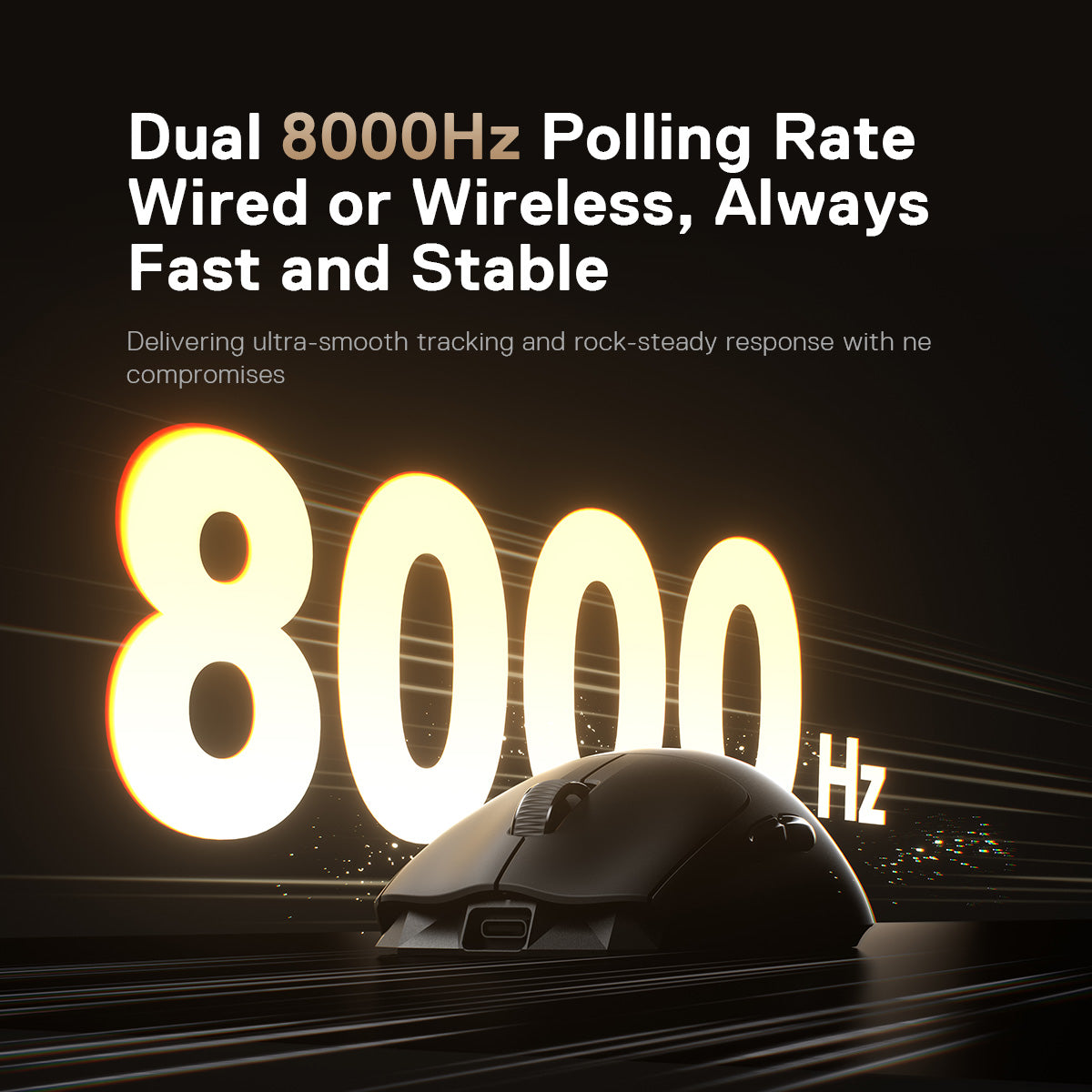 Horus supports 8 000 Hz polling rate in both wired and wireless modes, delivering ultra‑smooth tracking and rock‑steady response with no compromises.