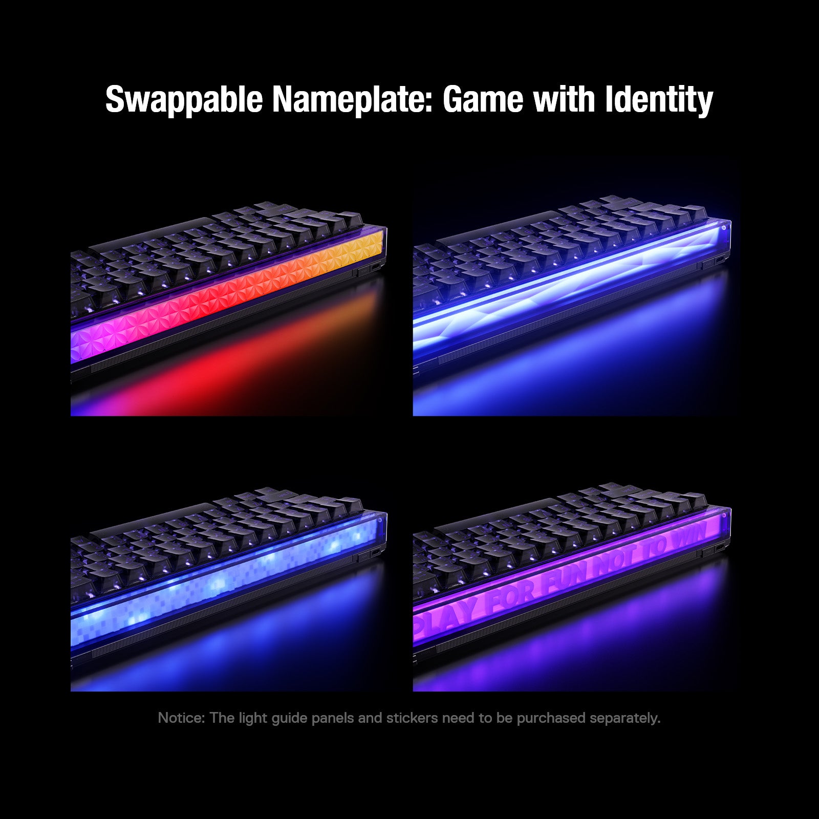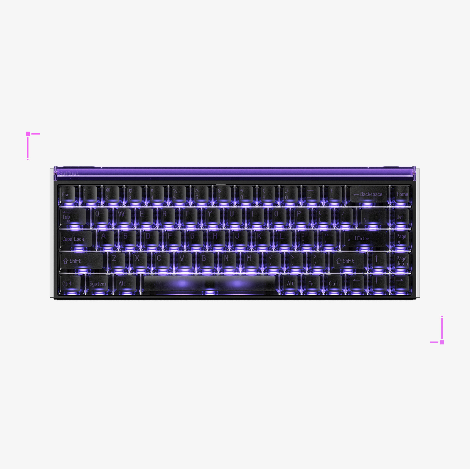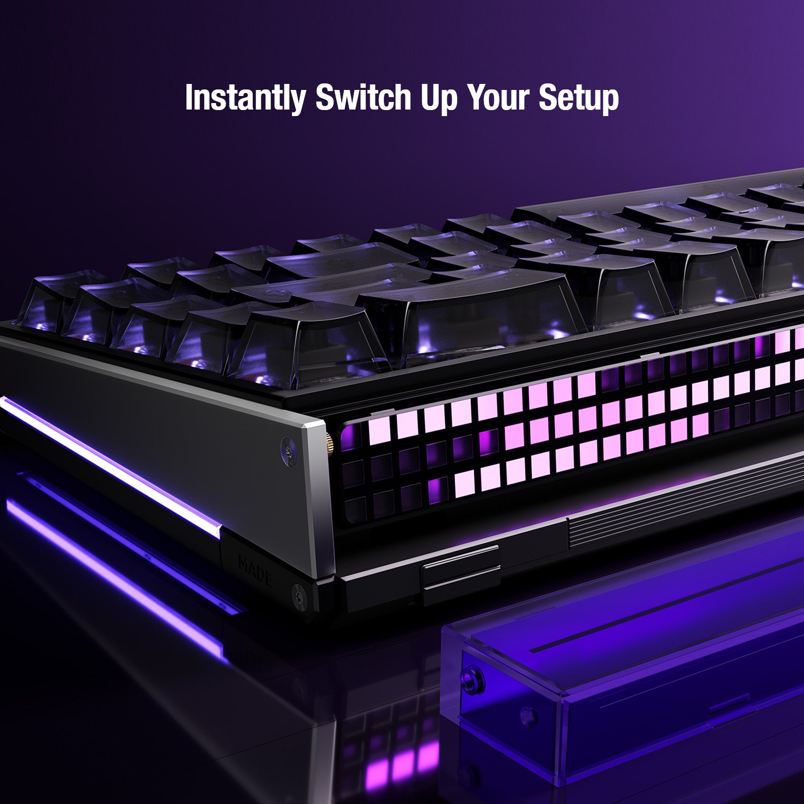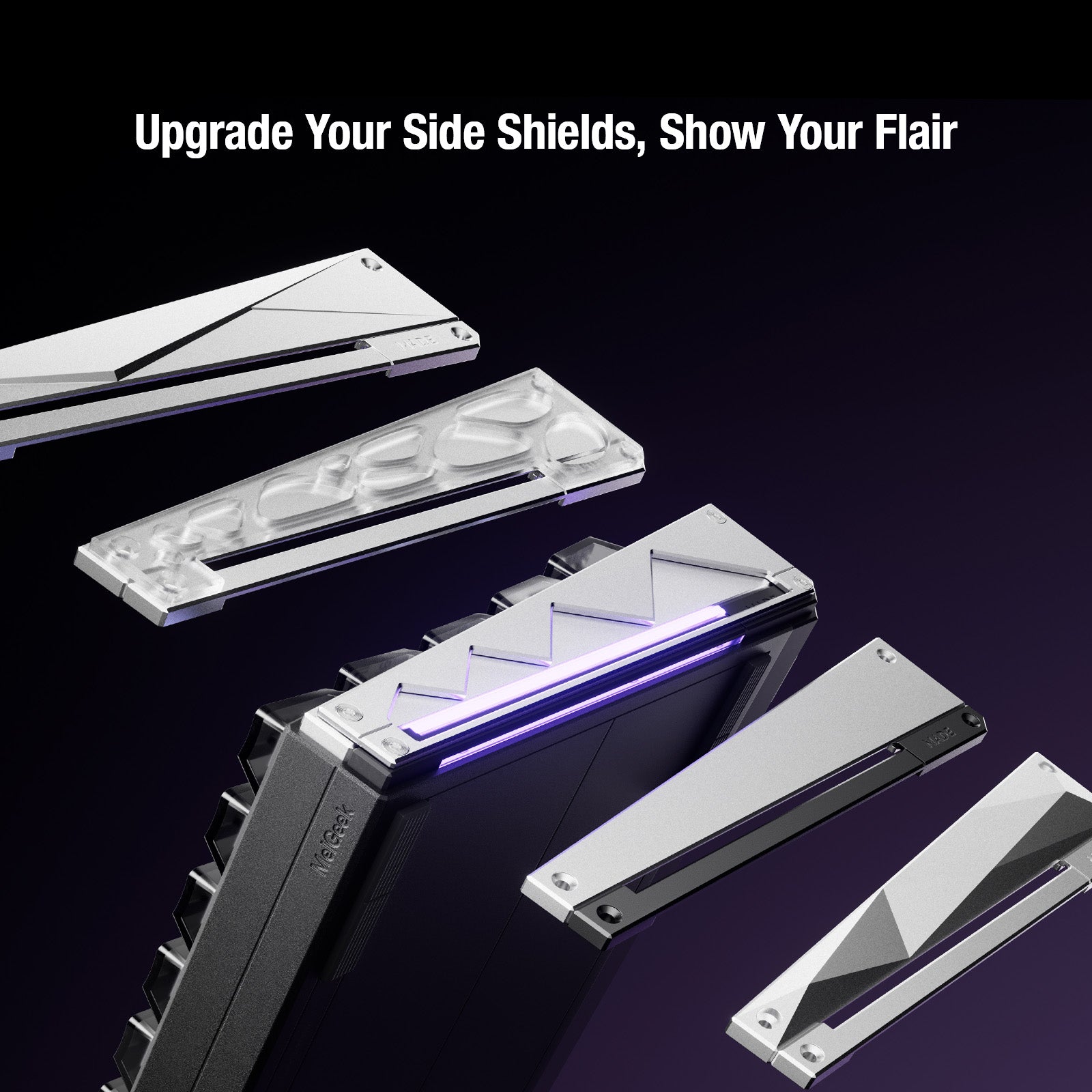 Haz que cada MADE68 Ultra V2 sea verdaderamente única. El diseño original de barra de luz personalizable de MelGeek te permite crear una infinidad de modificaciones. Mejora tu estética con 11 paneles laterales divididos, intercambiables y únicos, cada uno con una textura distinta. Integra tus propios paneles de guía de luz personalizados impresos en 3D para mostrar con elegancia tu ID de jugador, nombre o firma personal. Experimenta una textura visual completamente diferente con cada combinación: el único límite es tu imaginación.