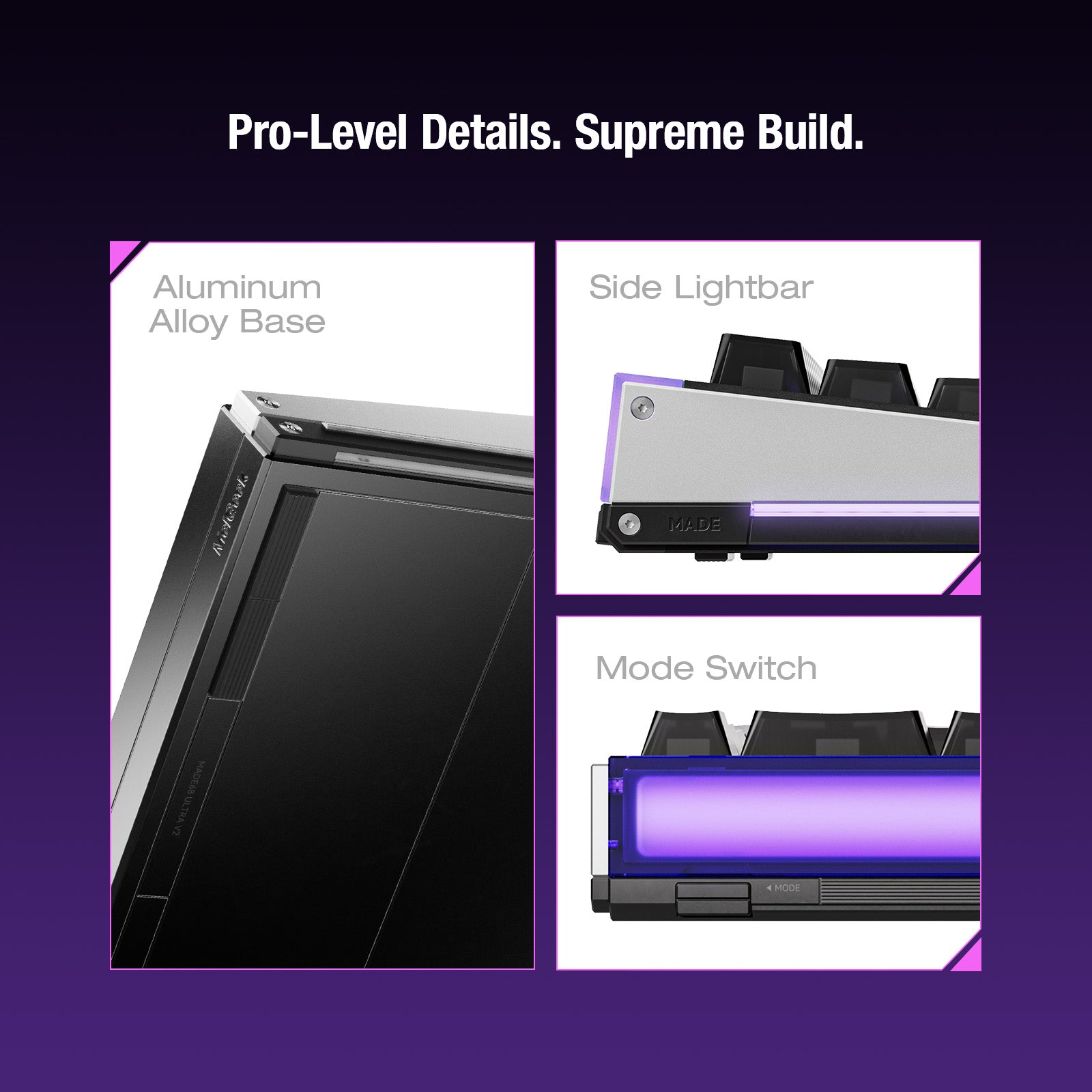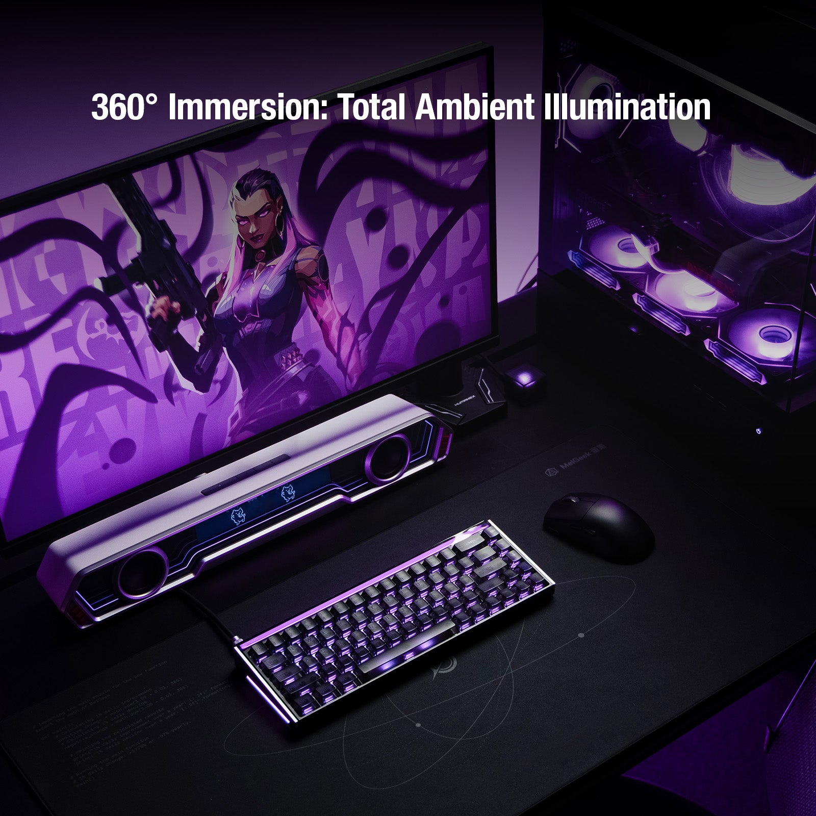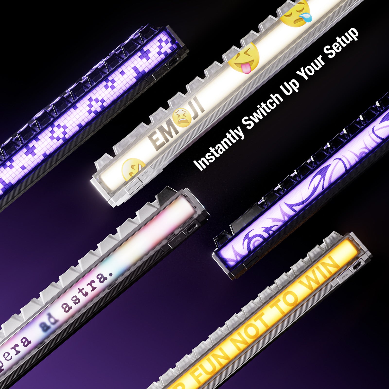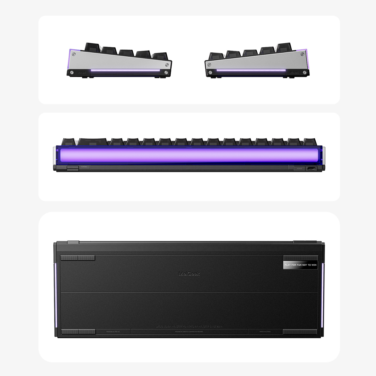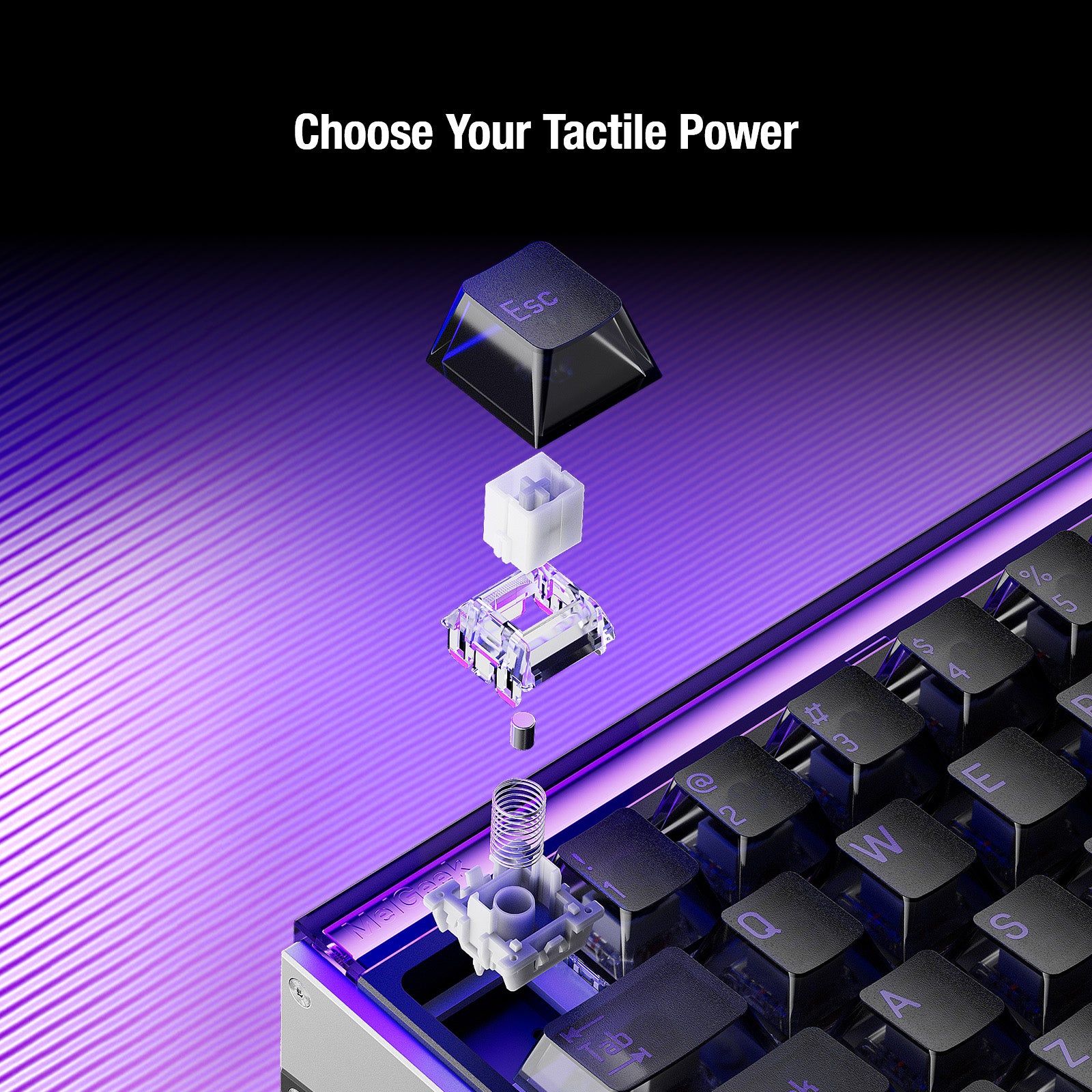 Haz que cada MADE68 Ultra V2 sea verdaderamente única. El diseño original de barra de luz personalizable de MelGeek te permite crear una infinidad de modificaciones. Mejora tu estética con 11 paneles laterales divididos, intercambiables y únicos, cada uno con una textura distinta. Integra tus propios paneles de guía de luz personalizados impresos en 3D para mostrar con elegancia tu ID de jugador, nombre o firma personal. Experimenta una textura visual completamente diferente con cada combinación: el único límite es tu imaginación.