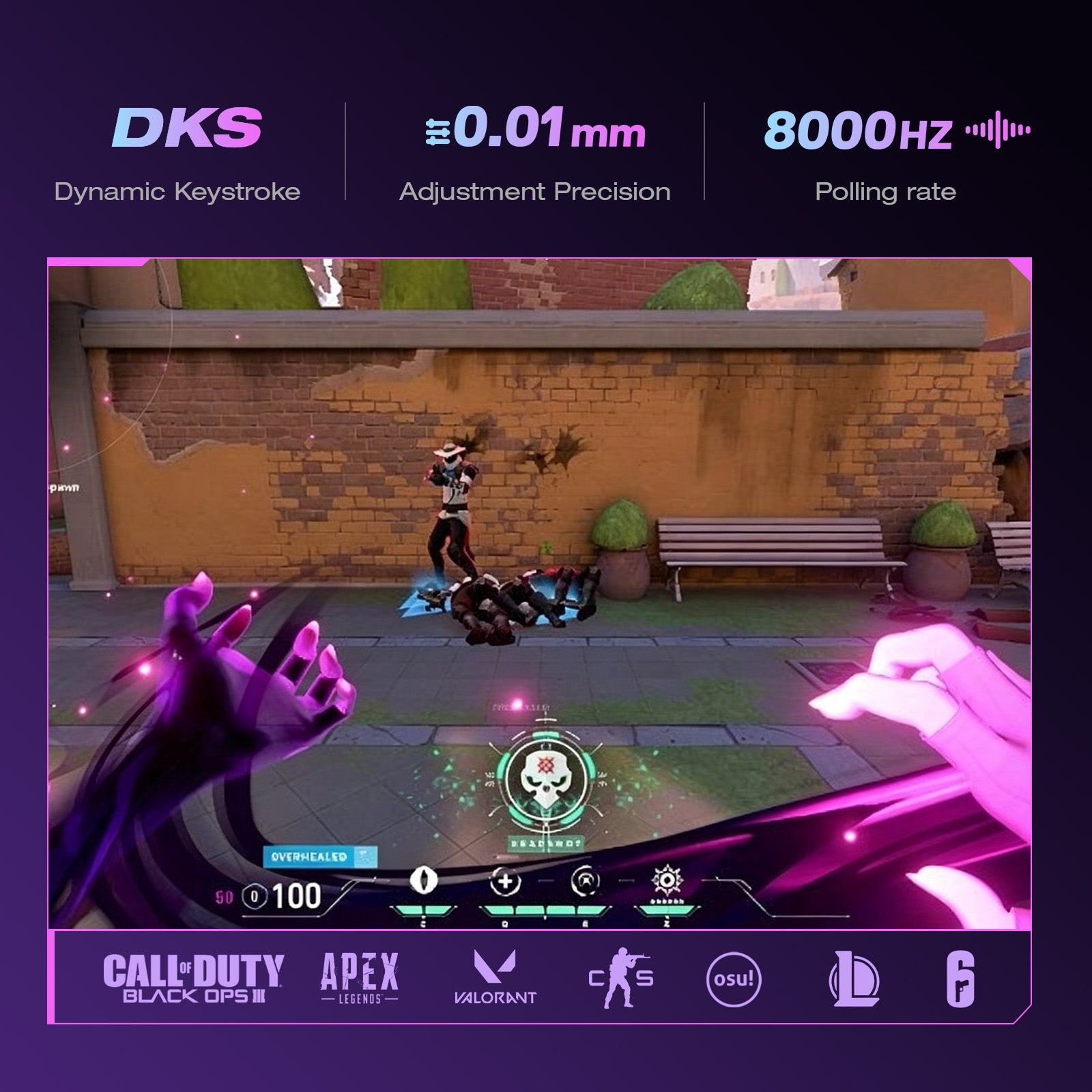 Vive el juego al máximo. Tu configuración reacciona a cada habilidad y eliminación. Desde movimientos tácticos hasta victorias épicas, celebramos tus mejores momentos en todo su esplendor.