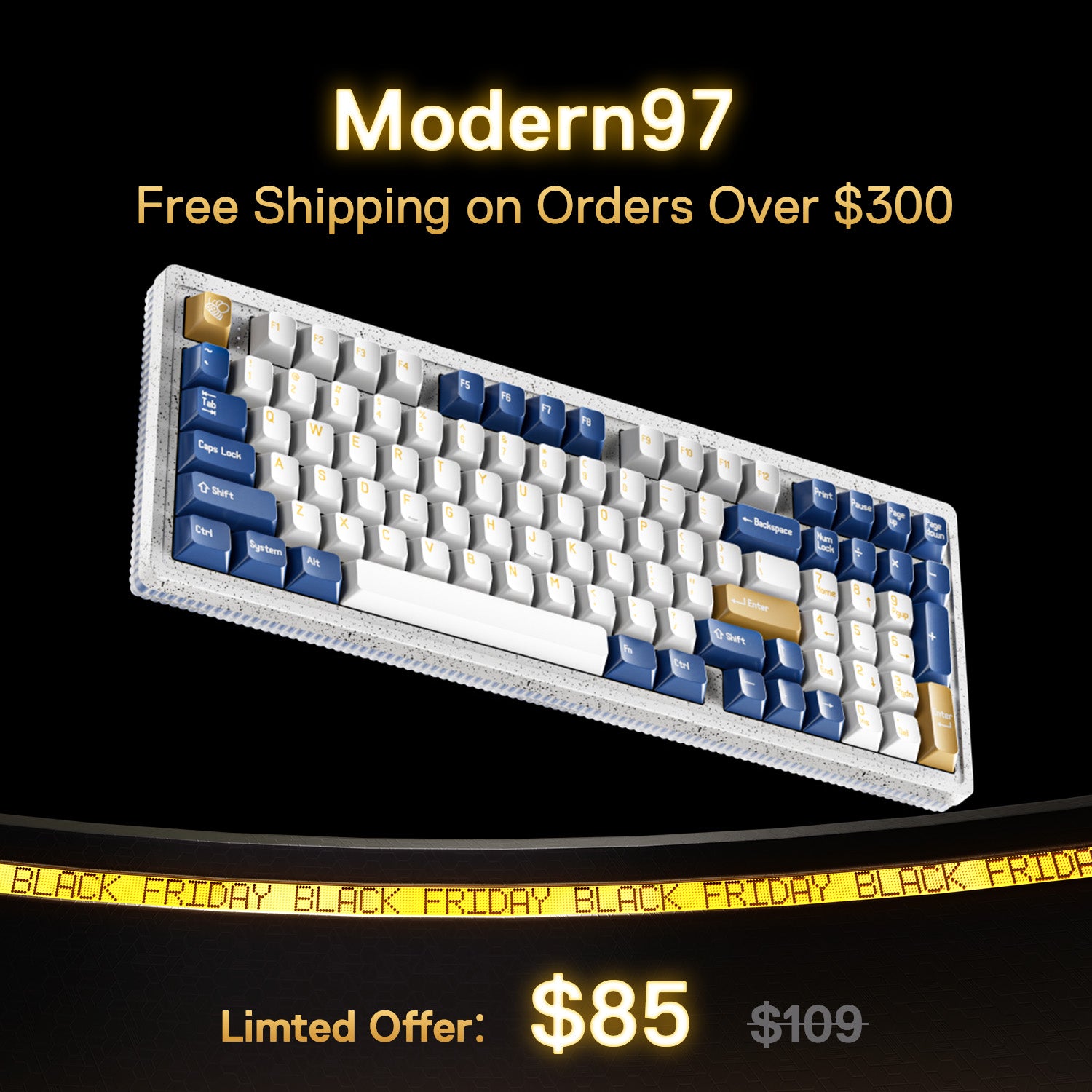 Modern97은 컴팩트한 97% 레이아웃 기계식 키보드로, 전용 소프트웨어 Hive와 함께 사용 가능하며, 모든 니즈를 충족하는 완벽한 맞춤 설정을 제공합니다! 406일의 놀라운 수명, 초고속 1ms 응답 속도, 그리고 Kailh 커스텀 스위치로 타이핑 경험을 한 단계 업그레이드하세요!